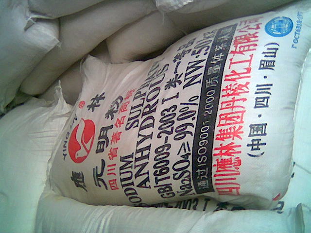硫酸鈉,無機化合物,又名無水芒硝,白色、無臭、有苦味的結(jié)晶或粉末, 有吸濕性。外形為無色、透明、大的結(jié)晶或顆粒性小結(jié)晶。主要用于制水玻璃、玻璃、瓷釉、紙漿、致冷混合劑、洗滌劑、干燥劑、染料稀釋劑、分析化學(xué)試劑、醫(yī)藥品等。